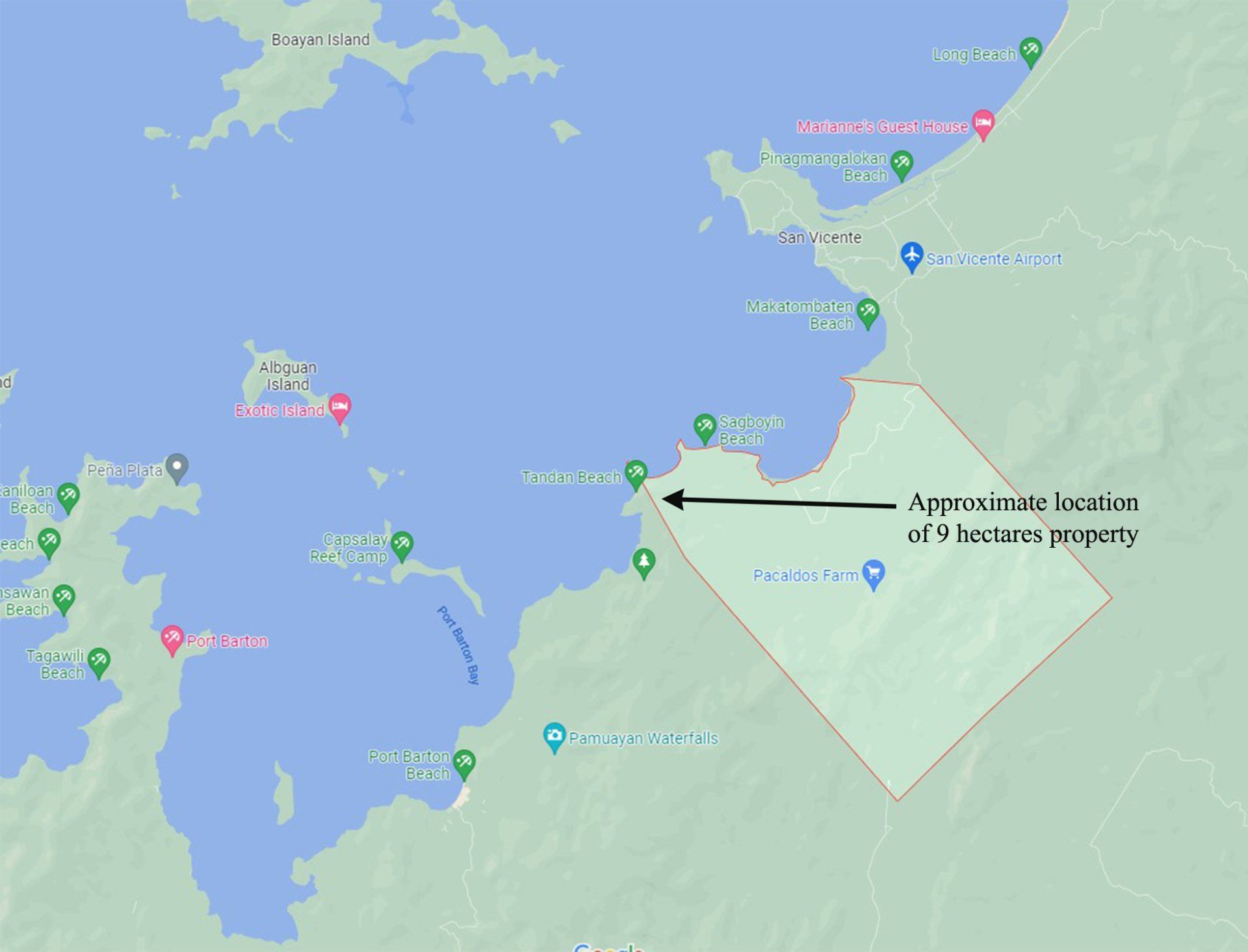 Location: Sitio Tandan, Barangay Kemdeng/Port Barton, San Vicente Palawan,