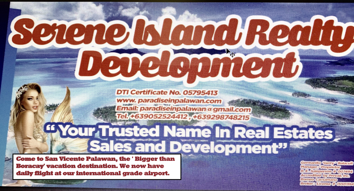 www.paradiseinpalawan.com is run by "Serene Island Realty Development'. "Serene Island Realty Development''